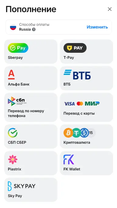 1Win поддерживает несколько популярных способов пополнения счёта для пользователей из РФ. Минимальные пороги зависят от выбранного метода, но в среднем стартуют от суммы порядка 1000 ₽. Зачисление средств обычно происходит в течение нескольких минут.