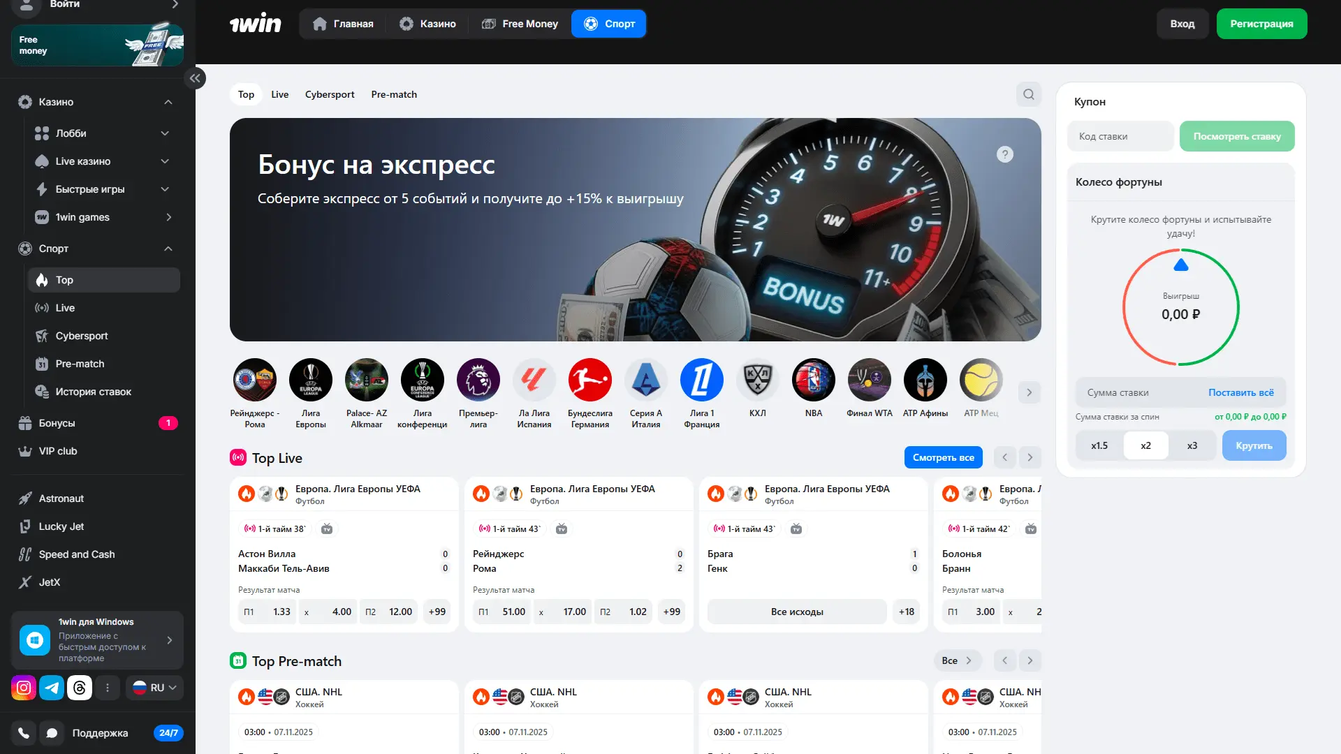 1Win выступает не только как казино, но и как полноценная букмекерская платформа. Каждый день в линии доступно более 1000 событий: от топовых лиг до региональных турниров. Игрокам предлагают стандартный прематч, live-ставки, дополнительные рынки и промо для экспрессов. Важный плюс — встроенные трансляции и обширная статистика по многим матчам.